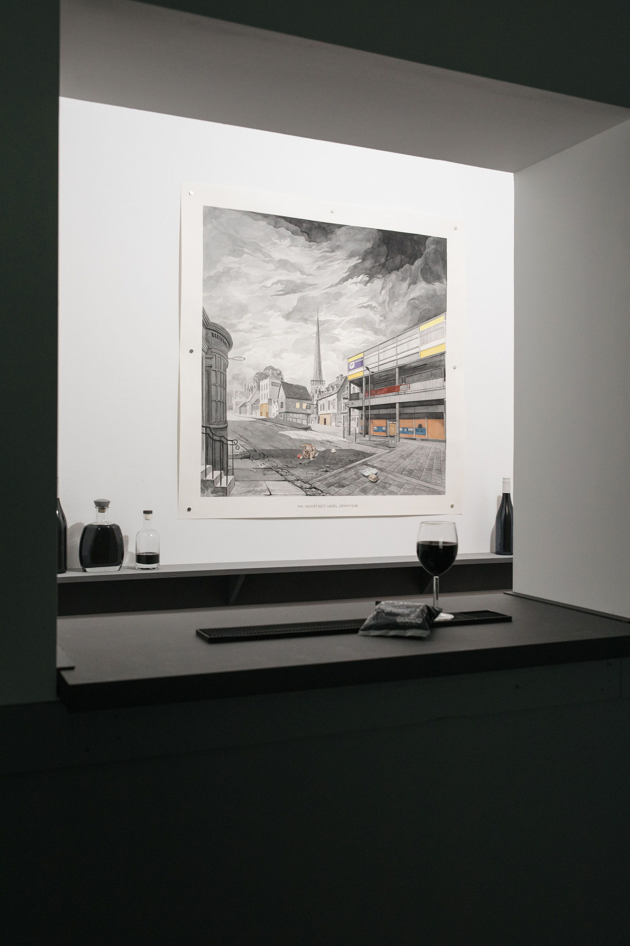 Commissioned for her solo exhibition Out of this World, Dean’s new film is a portrait of Hemel Hempstead, where she was raised and unfolds as a personal essay on the town’s history as a planned community under the New Towns Act of 1946. Titled Hemel, the work’s central reference is a 1957 sci-fi horror B-movie shot in town about the arrival of a non-human entity that infiltrates the minds of residents and endangers life with a toxic black slime. Playing a composite character based on herself and the movie’s detective protagonist, Dean’s extraordinary vantage brings together real and imagined worlds, both past and present.