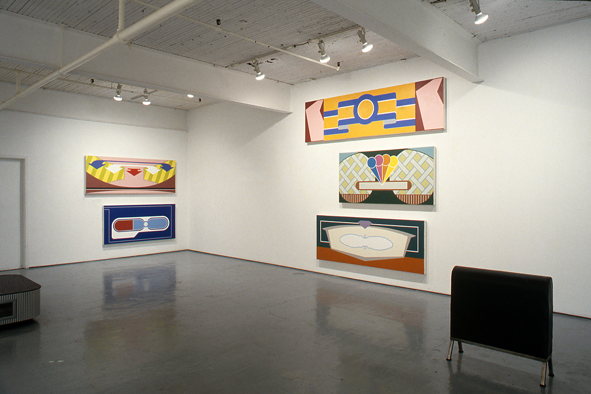 Yellow Pages, Maxi Pads, Haagen Daaz, high school year books, newspaper boxes, pornography shops, tractor trailer and tour bus graphics--Glavin has drawn upon the broadest possible range of references from the increasingly populous urban landscape. The paintings incite and rely on the audience's familiarity to this wide variety of incongruous combinations. The work reproduces the vernacular of street level signs in the slick manner of high-end commercial advertising.