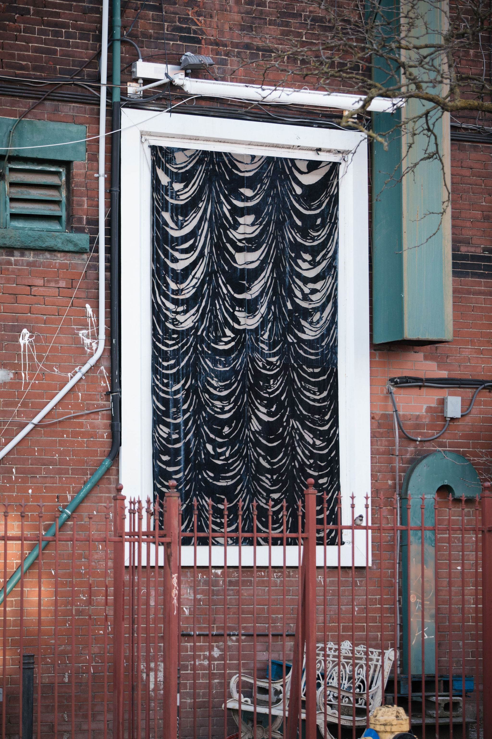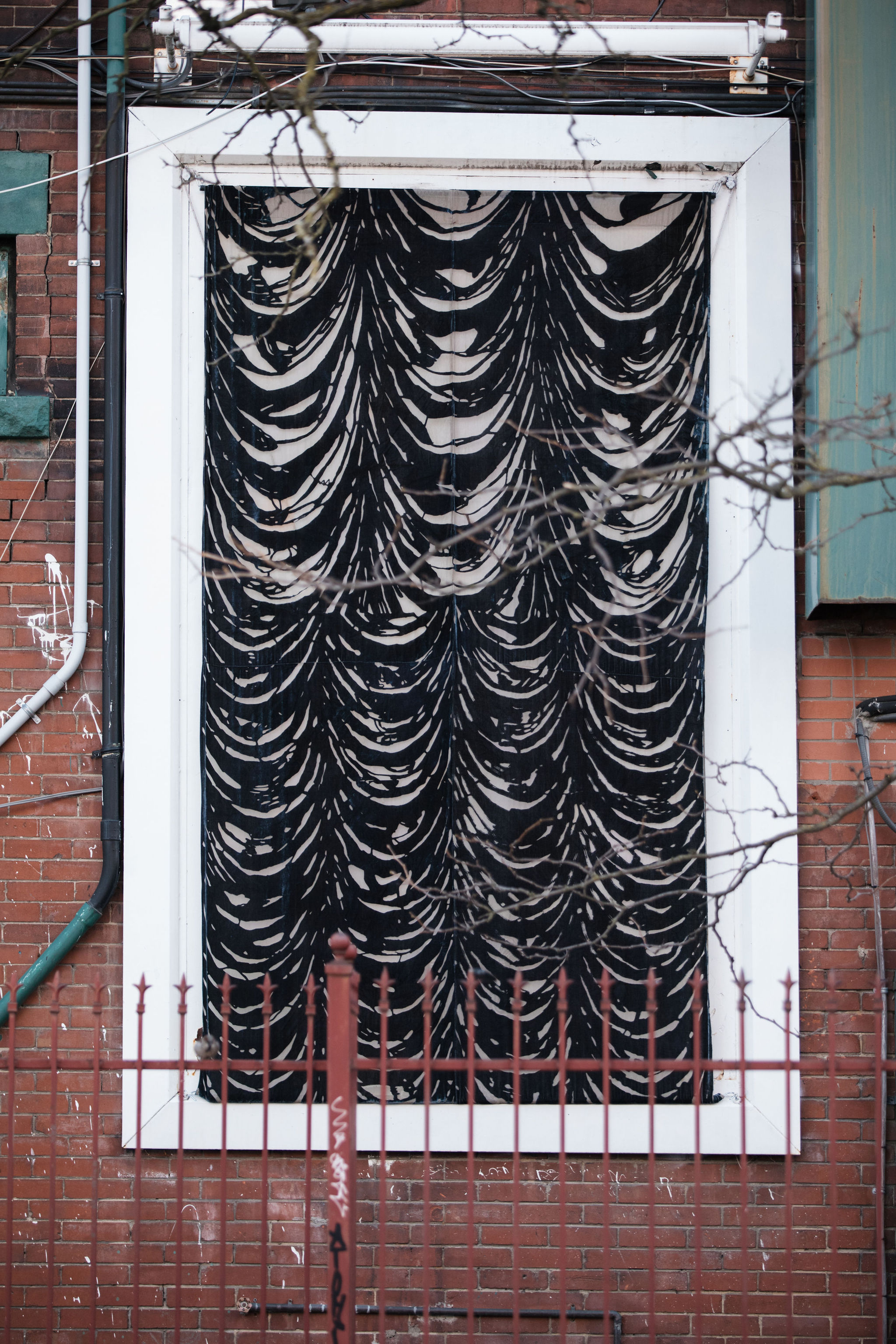 Working with materials such as photo emulsion, plastic filament, and various sheer fabrics, Jealousy presents three sculptural works, each forging an impression of the one before to form a series of abstracted theatrical drapes. Prompted by the history of Mercer Union’s building as a cinema in the early part of the last century, these works come together as adverts for a fictional premiere: a new film adaptation of Alain Robbe-Grillet’s 1957 novel La Jalousie. Noting the double-meaning of the title (“jealousy” or “louvered window”), Kubba attunes to the history and architecture of the building, taking cues from the various mediating forms punctuating its façade—vents, chutes, and other porous passages—that elicit transgression and permit the senses to travel.