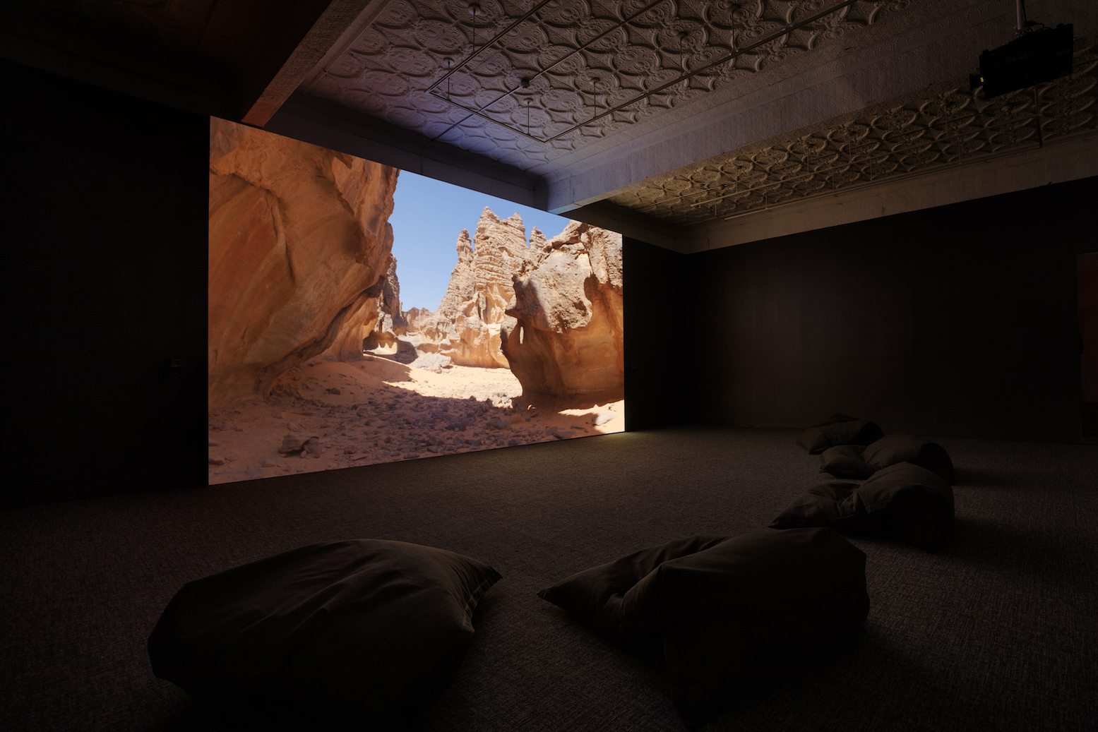 Lydia Ourahmane’s Tassili (2022), is the fourth project in Mercer Union’s Artist First program. At the centre of the exhibition is a moving image work filmed in Tassili n’Ajjer, a Sahara plateau in southeastern Algeria.
