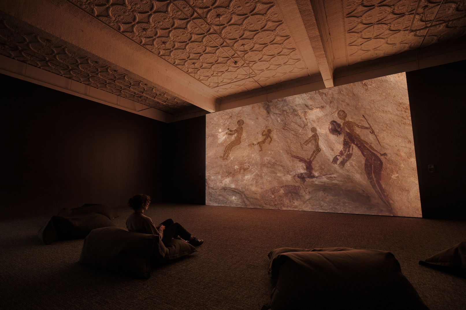 Vibrant and seductive, Tassili is shot in first-person perspective and edited together across the days and nights in the desert. The result is a hypnotic wandering through an otherworldly terrain composed of sandstone that has been shaped by thousands of years of erosion into natural arches and deep gorges. The landscape holds prehistoric cave paintings and rock engravings, with some dating as far back as 10,000 years. Traveling to a place marked by depictions of ancient rites, Ourahmane’s journey engages with the spiritual dimensions of the plateau. Its mesmerizing imagery is seen structured in four parts, each respectively scored by commissioned musicians Nicolás Jaar, felicita, Yawning Portal, and Sega Bodega.