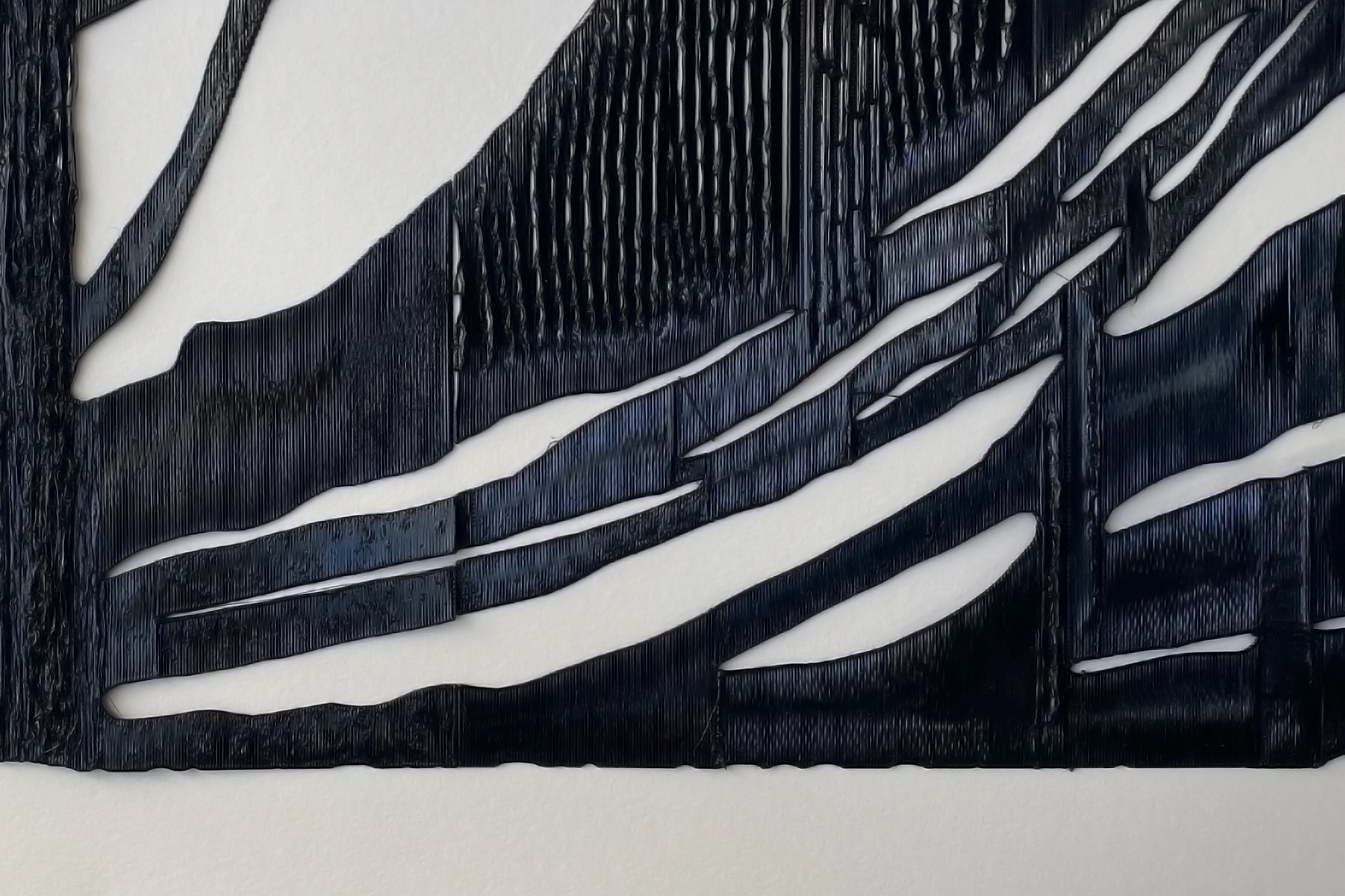 As with the other commissioned works in Turn Me Into a Flower, this pair of black laser etchings are based on a tracing Kubba drew of a document at the Stoddard-Templeton Design archive at the University of Glasgow. Their archive drawers house Victorian era tracings of Persian and other ‘Oriental’ rugs made by the designers at the Stoddard-Templeton factory. The archives mark a historic moment in the colonial appropriation of traditional crafts from British colonies into mechanised manufacture in Scotland.